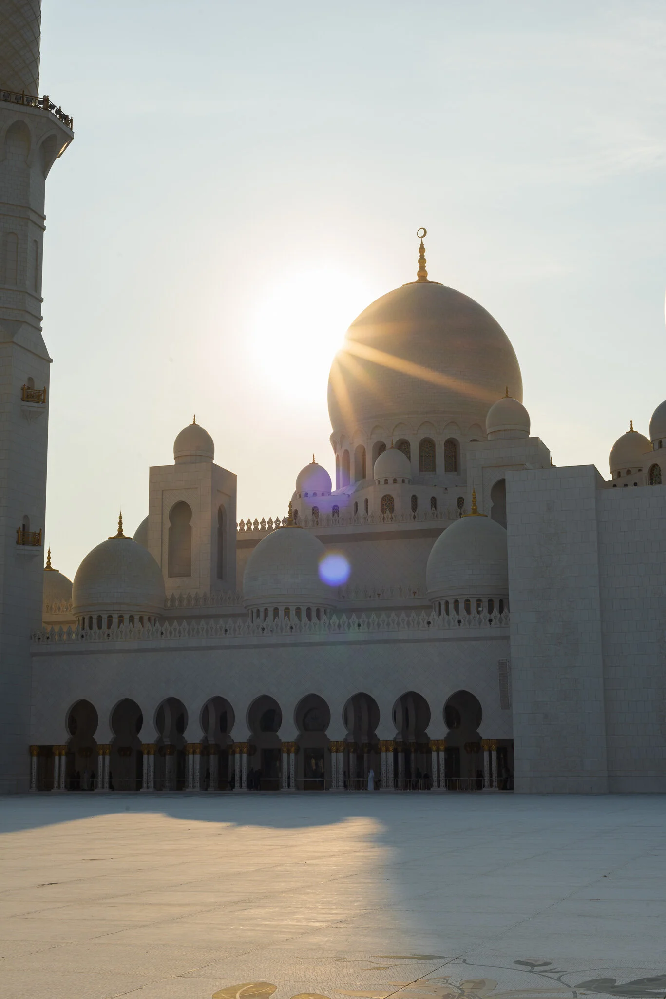 The overall design pulls in influence from religious centres across the region, ranging from the Moorish influence of Spain and Morocco all the way across to finding inspiration in structures from India and Pakistan. The construction materials are equally international - marble from Macedonia, Italy, India, and China have all found their way into this project, each one providing different colours and finishes along the way. Mother of pearl and other exotic materials are inlaid in intricate patterns on the columns leading to the prayer room, which holds a vast handcrafted carpet - apparently the largest in the world, taking over 1200 artisans to construct. At capacity, it can support over 40,000 worshippers at any one time.
